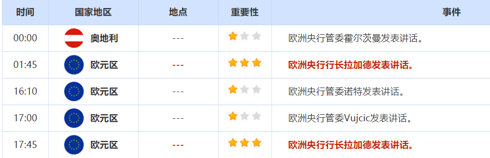 周二重要经济数据和风险事件