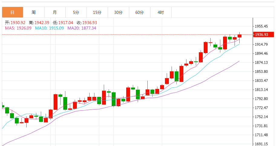 金价周二从九个月高位回落,因美元和美债收益率盘中小幅上扬,但美联储放缓加息的希望仍支撑市场。现货金上涨0.2%,至每盎司1934.82美元,在盘中早些时候创下2022年4月底以来最高。