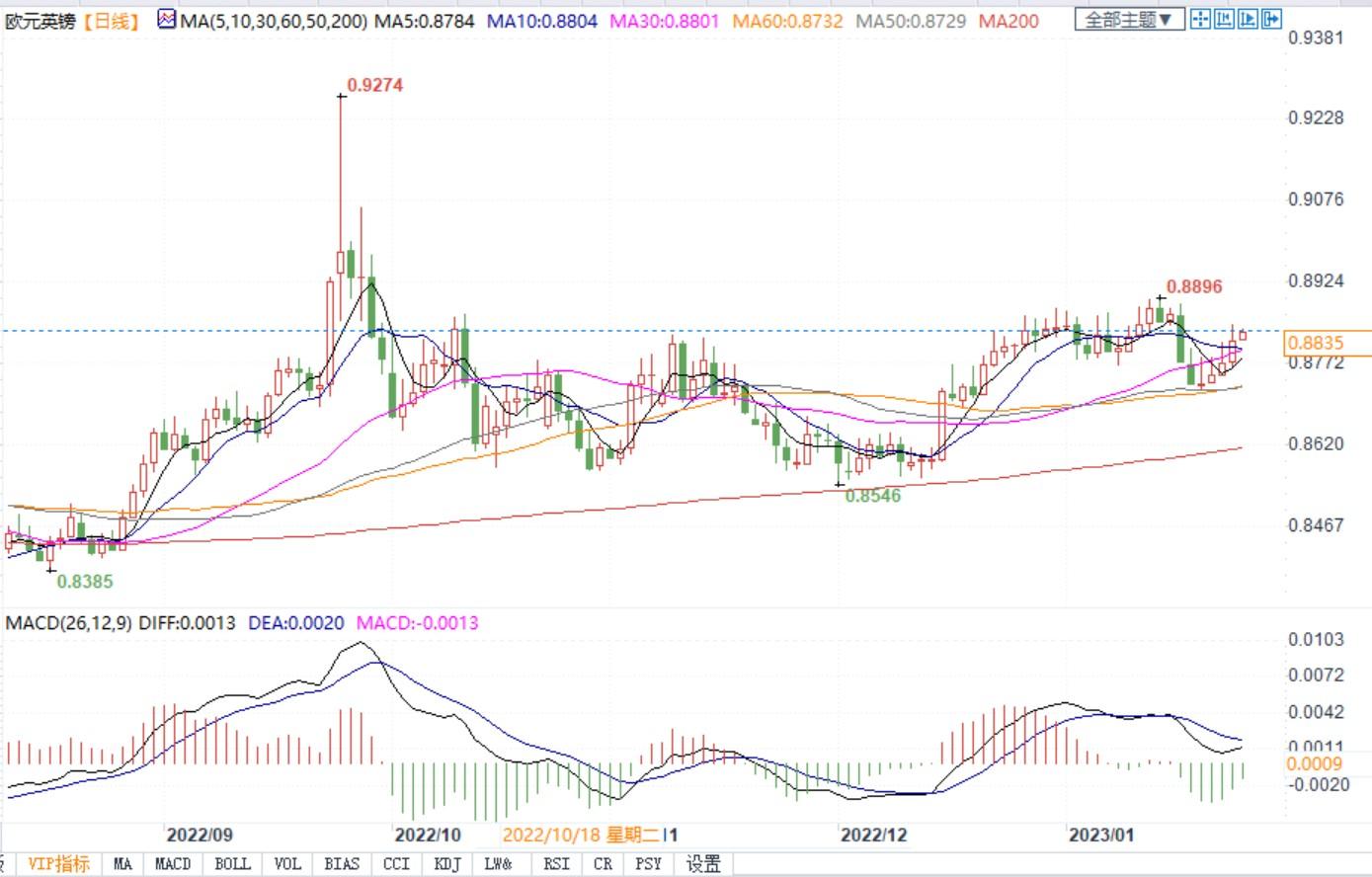 北京时间1月25日11:00,欧元兑英镑报0.8835/38