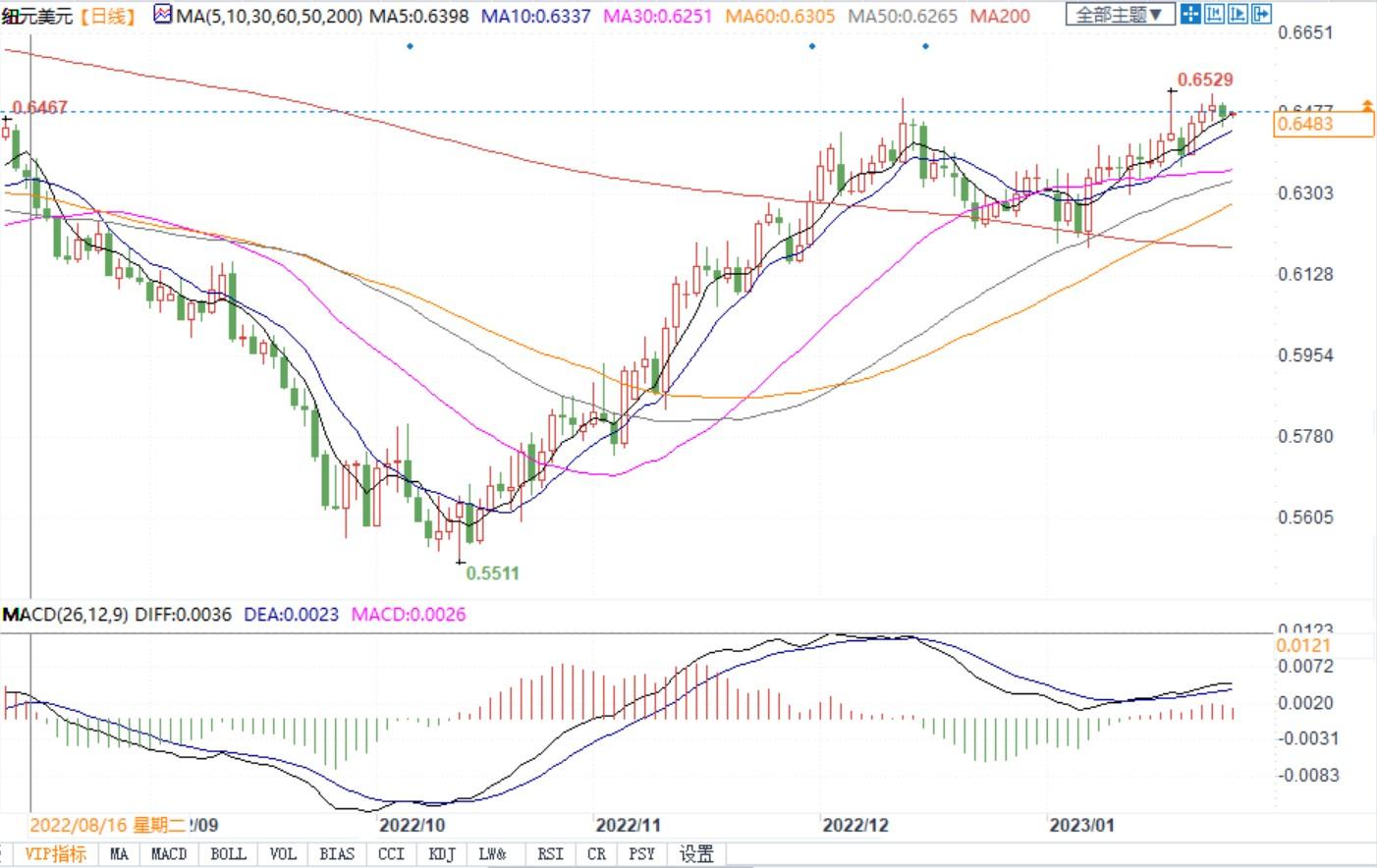 北京时间1月26日10:08,纽元兑美元报0.6483/85