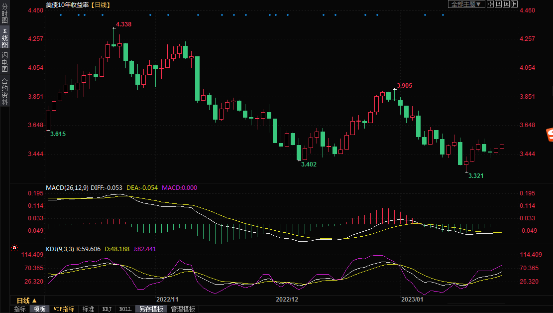 美国10年期国债收益率周四上涨约3个基点至3.491%。往往更密切地反映货币政策预期的两年期国债收益率上升了约4个基点,至4.178%。