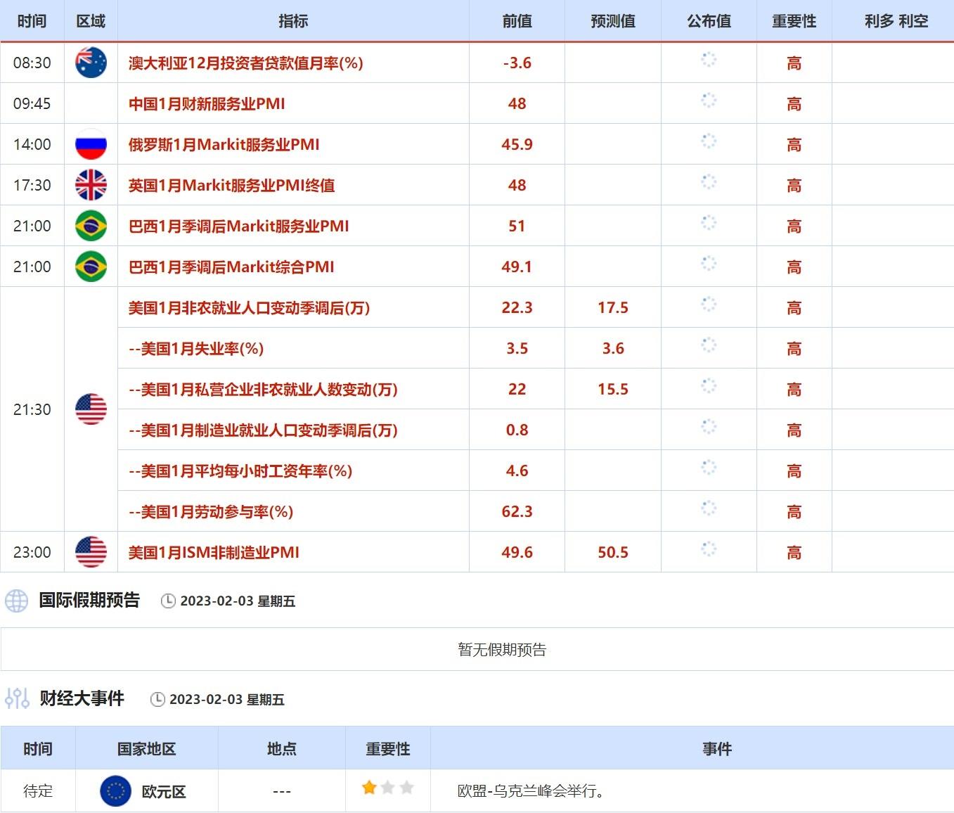 ⑤2月3日(周五)关键字:美国1月非农,美国1月失业率,欧盟-乌克兰峰会