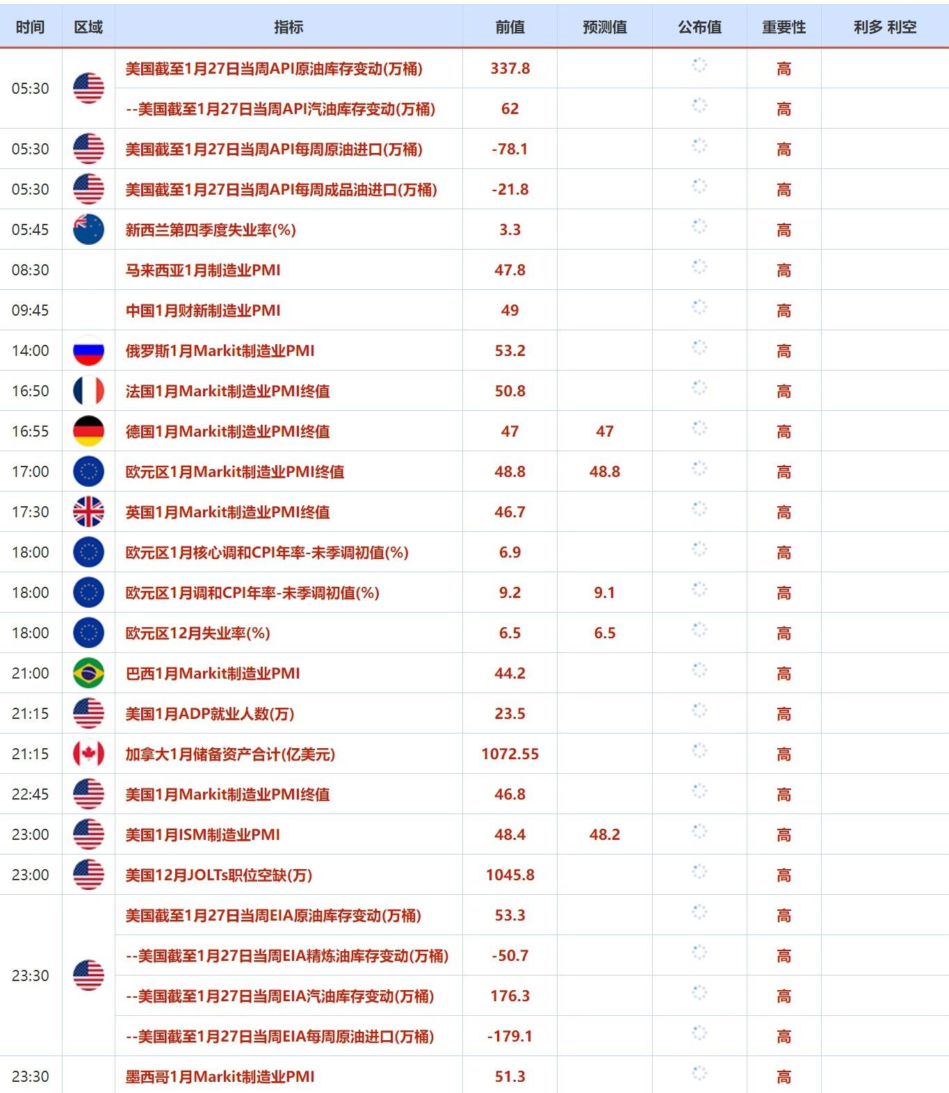 ②1月31日(周二)关键字:欧元区第四季度GDP,美国1月芝加哥PMI