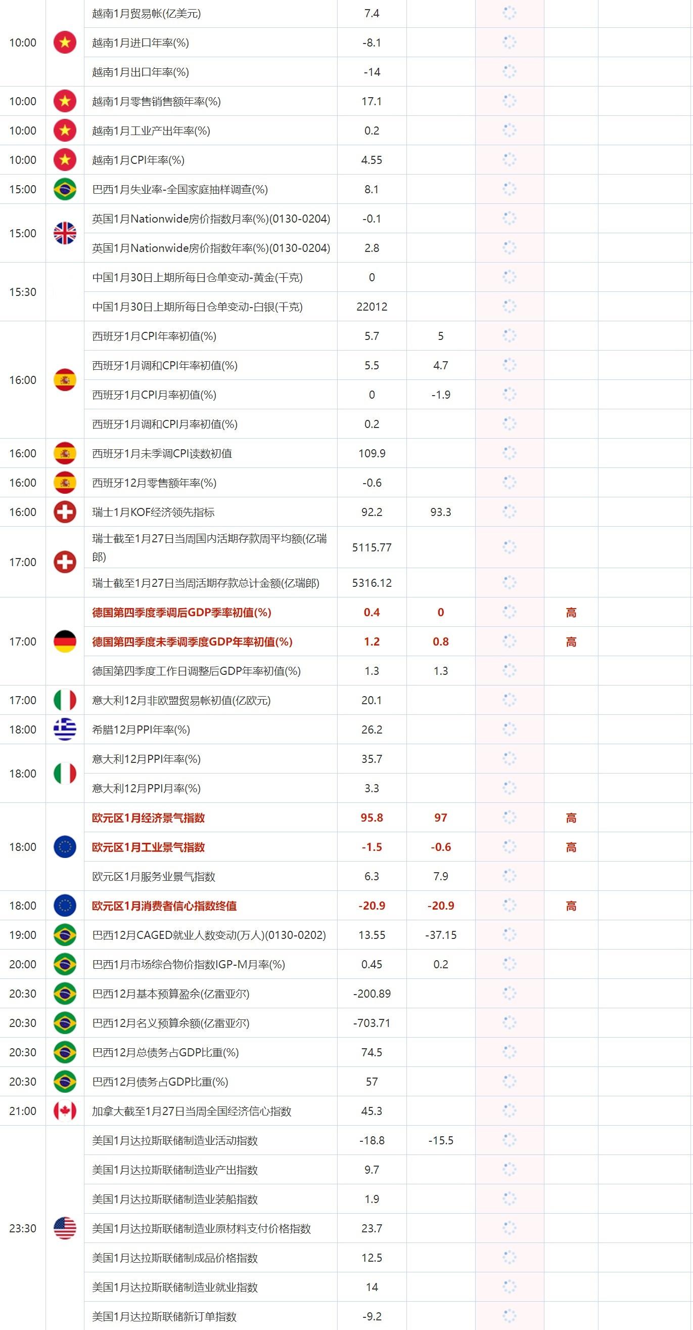 1月30日重点数据和大事件前瞻