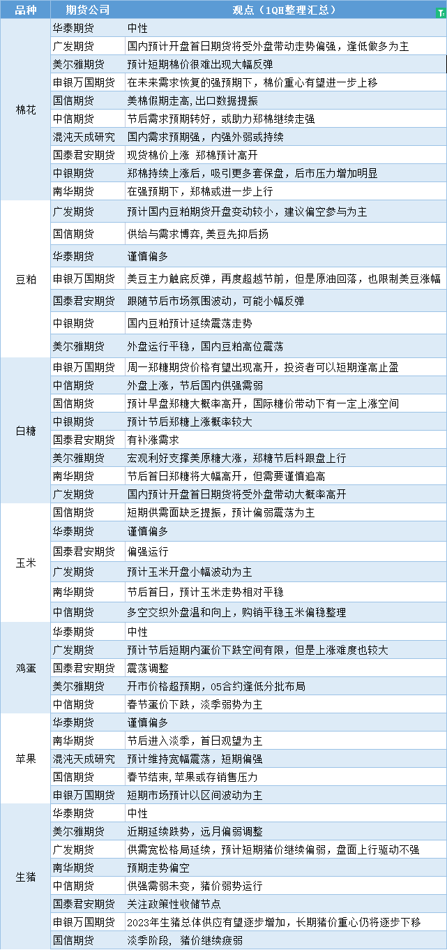 期货公司观点汇总一张图:1月30日农产品(棉花、豆粕、白糖、玉米、鸡蛋、生猪等)