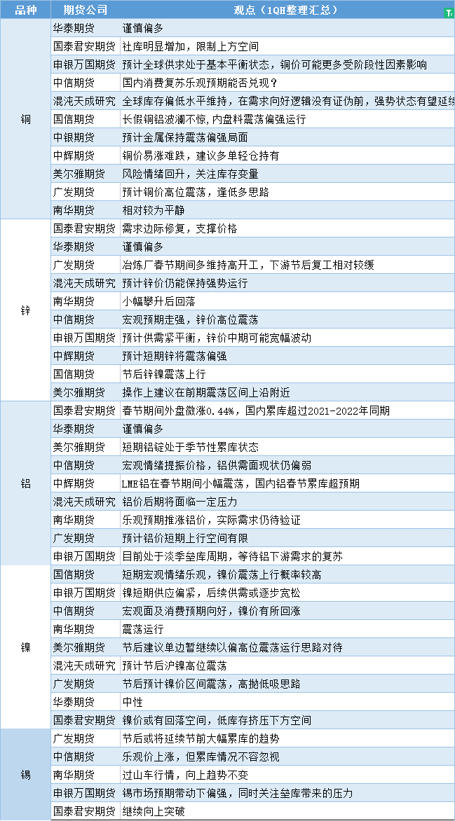 期货公司观点汇总一张图:1月30日有色系(铜、锌、铝、镍、锡等)