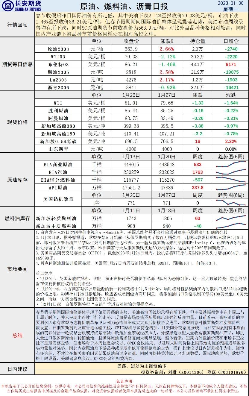 1月30日,长安期货发布原油早评,节后国际油价高开走强,多头力量回暖或打开上方空间,建议短差为主谨慎偏多。