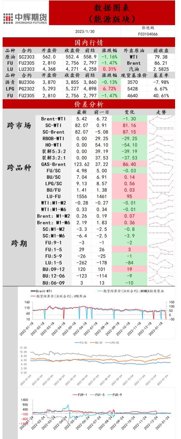 中辉期货原油日报20230130:原油震荡偏空运行