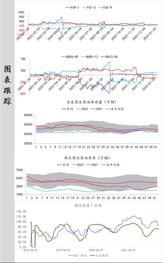 供应端:据美国能源信息署最新数据显示,截止2023年1月20日当周,包括战略储备在内的美国原油库存总量82012.7万桶,比前一周上升53.3万桶;美国商业原油库存44854.8万桶,比前一周上升53.3万桶;战略原油库存量37158万桶,与上期持平;美国汽油库存总量23202.2万桶,比前一周上升176.3万桶。商业原油库存比去年同期高7.77%,比过去五年同期高2.53%;汽油库存比去年同期低6.40%,比过去五年同期低约7.69%;馏分油库存比去年同期低7.90%,比过去五年同期低19.63%。