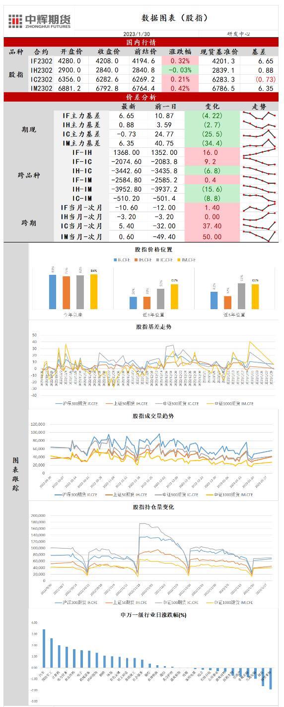 中辉期货股指日报20230130:A股兔年开门红,指数放量上涨