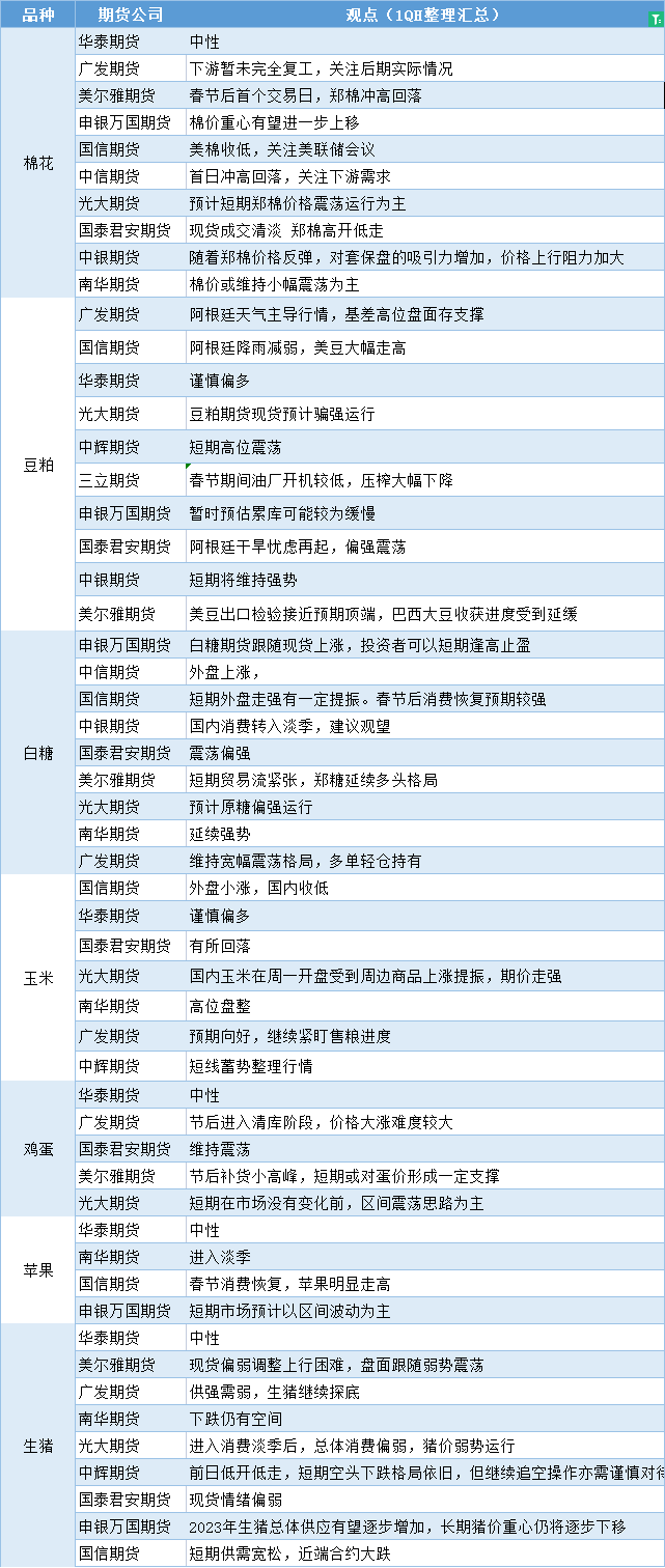 期货公司观点汇总一张图:1月31日农产品(棉花、豆粕、白糖、玉米、鸡蛋、生猪等)