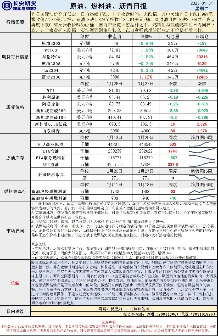 1月31日,长安期货发布原油早评,称高开低走考验下方支撑,多空交织前景仍需观望,可区间短差。