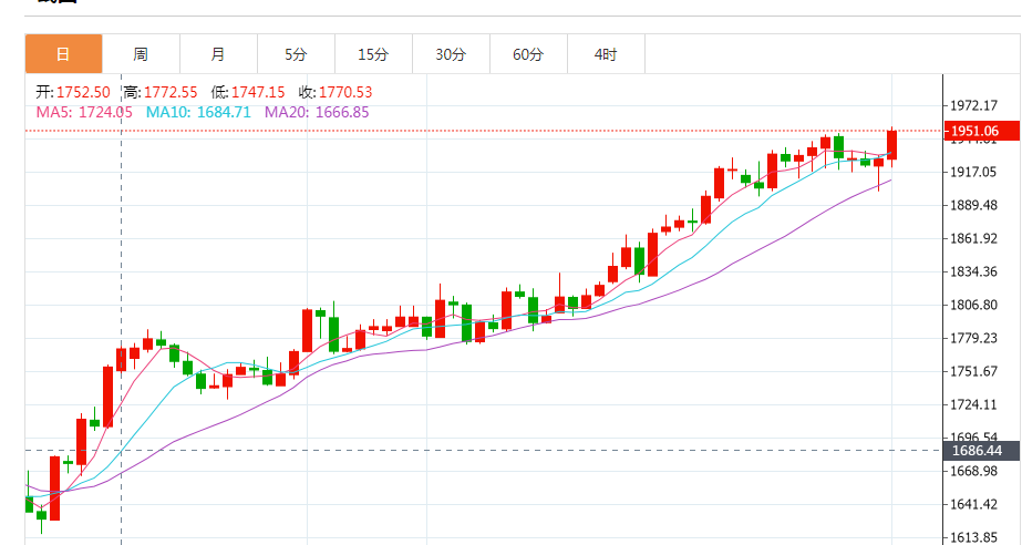 现货金周三大幅反弹,此前美联储主席鲍威尔有关通胀阻击战意外鸽派的发言导致美元下跌,并向投资者发出利率峰值可能临近的信号。现货金上涨1.2%,至每盎司1951.43美元,为2022年4月中以来的最高水平。