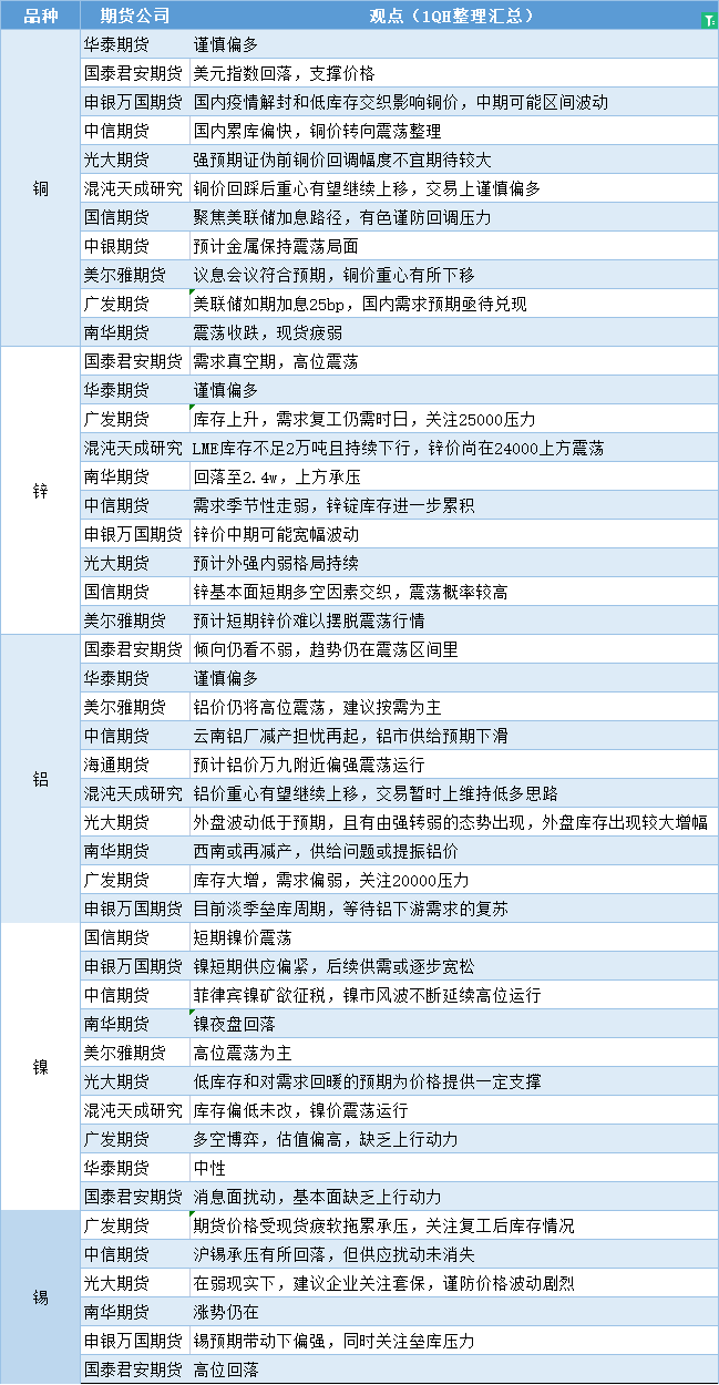 期货公司观点汇总一张图:2月2日有色系(铜、锌、铝、镍、锡等)