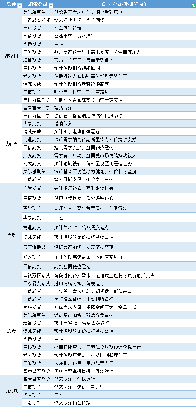 期货公司观点汇总一张图:2月2日黑色系(螺纹钢、焦煤、焦炭、铁矿石、动力煤等)