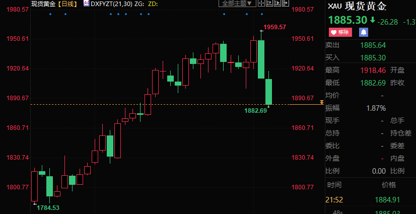 汇通财经APP讯——现货黄金有望时隔六周后重新收低,金价从周中创下的去年4月下旬以来新高1960美元下方附近回落,因全球三大央行本周继续加息。美国1月非农就业人数远超预期和前值,夯实了美联储年内无法降息的预期,加剧了黄金卖压。截止发稿,现货黄金本周累计下跌逾2%,创三周新低至1882.14美元美元/盎司。