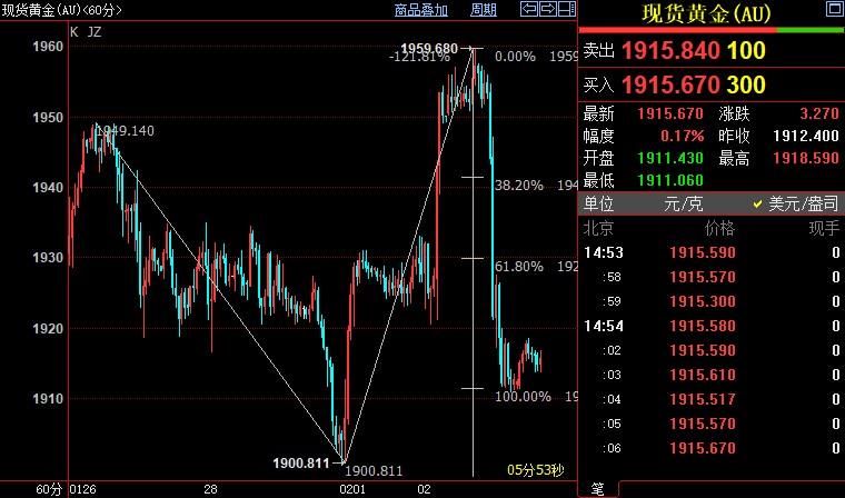 汇通财经APP讯——周五(2月3日),国际金价小幅反弹,交易员消化了全球主要央行政策进一步收紧。隔夜金价一度逼近1960美元,创去年4月中旬以来新高,但终盘收跌近2%。金价短线下看1900美元。