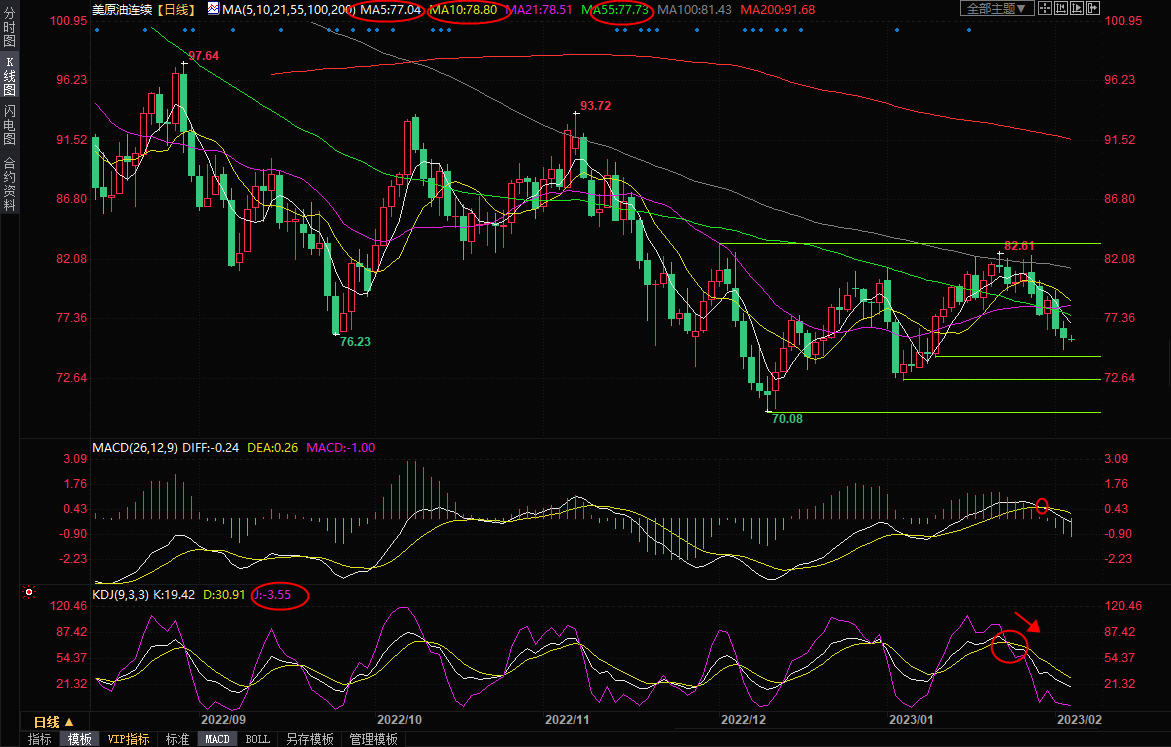 上方初步阻力在5日均线77.04附近,55日均线阻力在77.73附近,10日均线阻力在78.80附近,若意外收复该位置,则削弱短线看空信号。