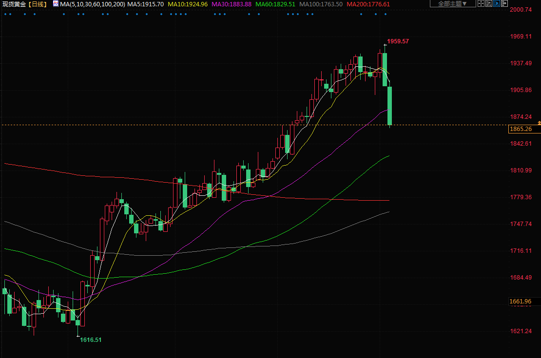 美元跳涨1.1%,达到三周高点,使黄金的吸引力降低。10年期美债收益率也在攀升。在长达一年的较大规模加息后,美联储本周早些时候又加息25个基点,美联储主席鲍威尔警告说将进一步收紧货币政策。
