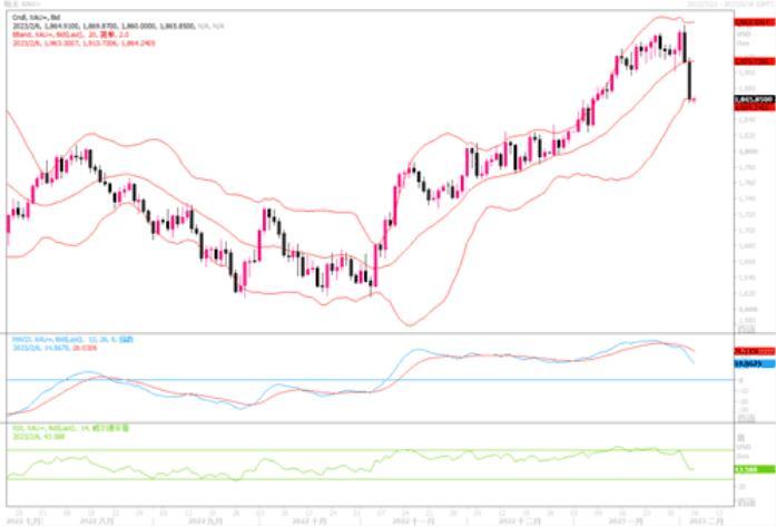 汇通财经APP讯——上周五(2月3日),由于远高于预期的美国非农就业报告和ISM非制造业PMI数据推高美元和美国国债收益率,现货黄金大跌近50美元,跌破1870美元关口。