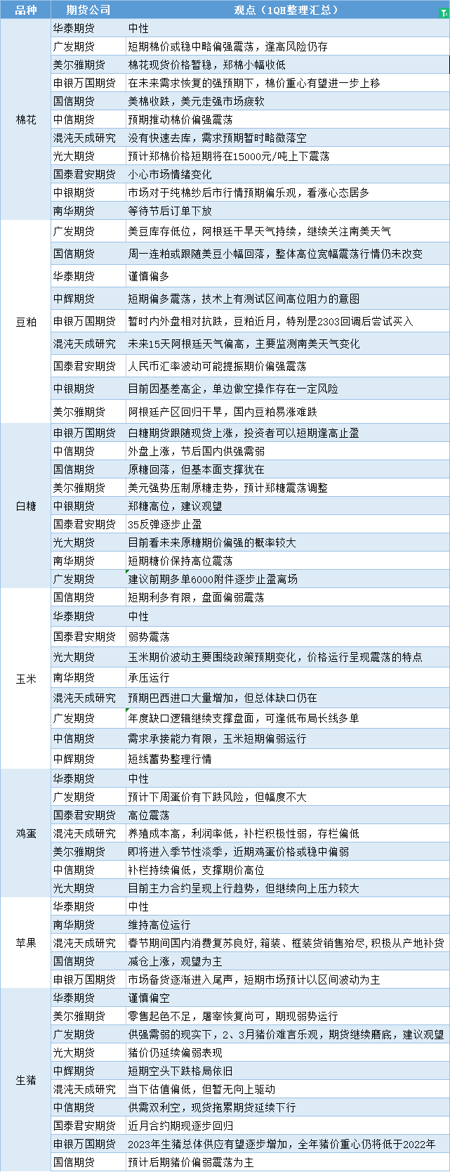 期货公司观点汇总一张图:2月6日农产品(棉花、豆粕、白糖、玉米、鸡蛋、生猪等)