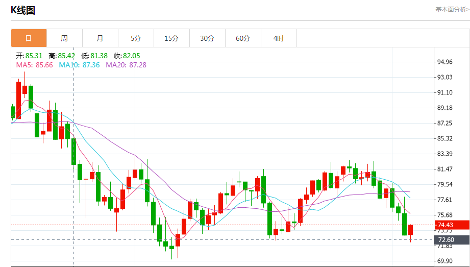 商品收盘情况:4月交割的布伦特原油期货上涨1.3%,报每桶80.99美元;美国原油期货上涨1%,至每桶74.11美元;美国期金结算价报1879.50美元,上涨0.2%。