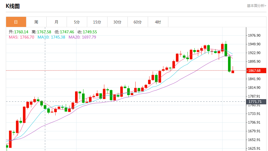 金价周一上涨,对经济放缓的担忧挥之不去之际,投资者看重黄金的避险吸引力,此前美元走强和美债收益率上升一度拖累金价触及一个月最低。 现货金上涨0.2%,至每盎司1868.96美元,盘中稍早一度触及1860美元的1月6日以来最低。