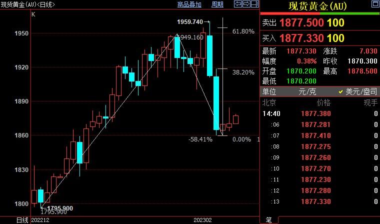 汇通财经APP讯——周三(2月8日),国际金价延续本周开启的弱势反弹格局,因美元指数承压。尽管上周公布的美国就业报告令人不可思议的走强,但美联储主席鲍威尔隔夜讲话并未给出新的鹰派立场。金价后市仍上看1896美元。