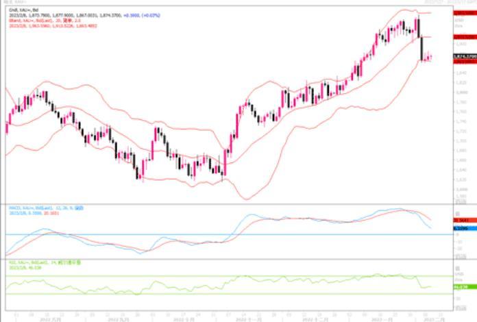 汇通财经APP讯——周二(2月7日)欧市盘中,现货黄金维持反弹升势,全日微涨0.30%,收盘于1872.20美元水平。