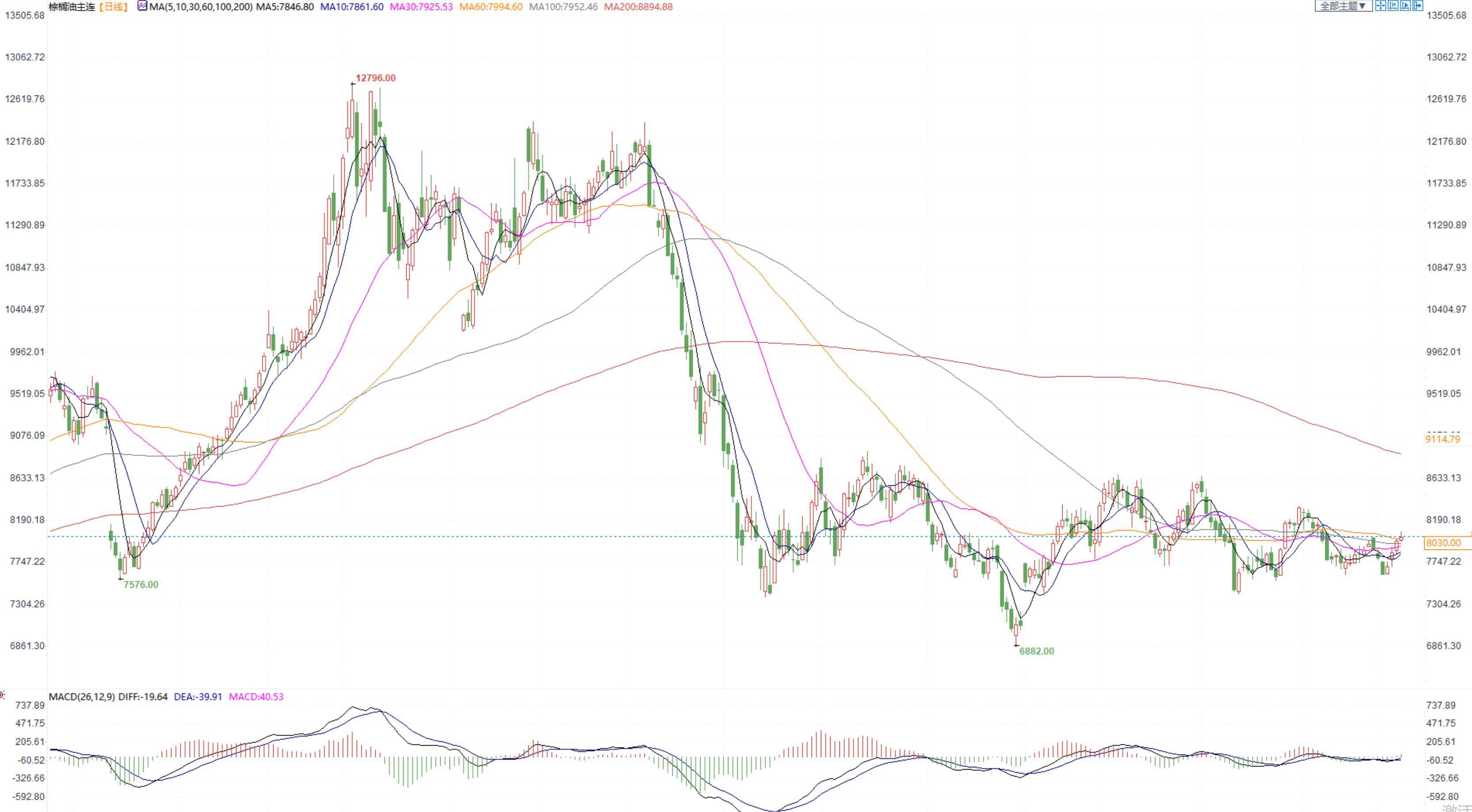 棕榈油2305合约日内涨1.39%,收盘8030元/吨,广州市场棕榈油7960元/吨。
