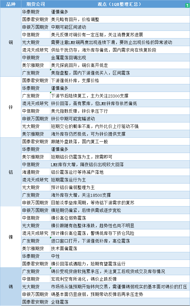 期货公司观点汇总一张图:2月9日有色系(铜、锌、铝、镍、锡等)