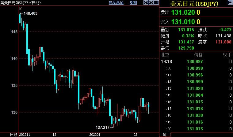 美元兑日元下跌,脱离周初创下的1月6日以来新高132.902,盘中低见129.796。但日本央行潜在候任行长表示,日本需要继续保持宽松政策,这限制了汇价跌势,目前下跌0.15%至130.975。