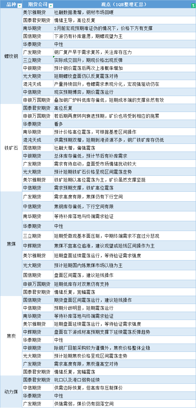 期货公司观点汇总一张图:2月13日黑色系(螺纹钢、焦煤、焦炭、铁矿石、动力煤等)