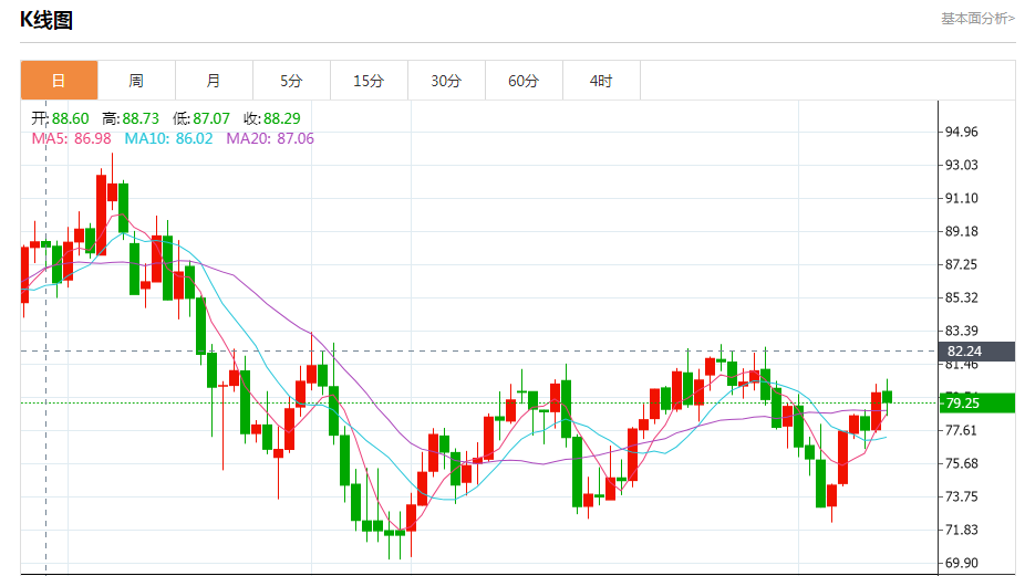 商品收盘情况:布伦特原油期货结算价上涨0.25%,报每桶86.61美元,美国原油期货结算价上涨0.5%,报每桶80.14美元。美国期金下跌0.6%,报1863.50美元。