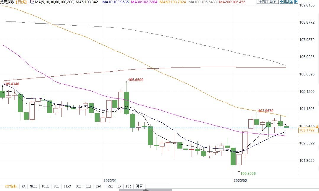 北京时间2月14日11:21,美元指数报103.19