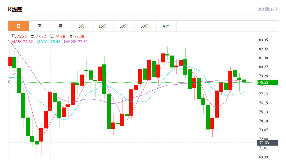商品收盘情况:布伦特原油期货下跌或0.2%,至每桶85.38美元,美国原油期货下跌0.6%,至78.59美元。美国期金收低1.1%,结算价报1845.30美元。