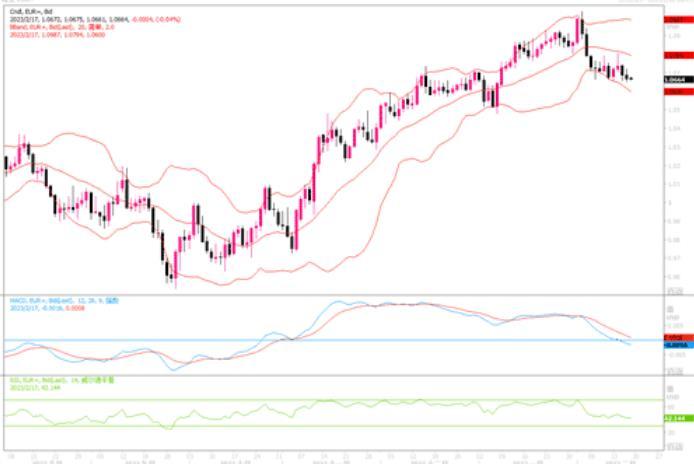 周四(2月16日)美元兑一揽子货币继续走强,欧元兑美元则承压当日下跌0.13%,低收于1.0673。在周四当天,美国公布1月PPI较前月上升0.7%,逆转12月下降0.2%的跌势。上周初请失业金人数意外降至19.4万人,相比之下,路透调查预估为20万人。随之,克利夫兰联邦储备银行总裁梅斯特发表鹰派讲话,他讲话称,美联储“在将政策从非常宽松的立场转向限制性立场方面已经取得了明显进展,但我认为还有很多工作要做”。近期连续不断公布强于预期的经济数据叠加美联储官员的鹰派表态,无疑巩固了“在更长时间内维持更高利率”的观点。这也是美元近期回强的原因所在。虽然欧央行在加息态度上也是呈激进倾向,但似乎最近的风头被美元盖住,上行受到阻滞转而走阴跌态势。日线图上,欧元兑美元已跌落各短期均线下方,技术指标也配合性的向下摆动,下走倾向性较强。近期除非欧元区有新的重大利好刺激因素出现,否则交易上还是以防范欧元继续走软的风险为主,下方关键支撑目标在1.05。