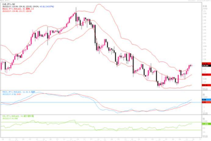周四(2月16日)美元兑日元继续盘桓在近近阶段的高位区域134.00附近。日元隔夜受美国数据影响不大,主要是市场正在等待被提名为日本央行下一任总裁的植田和男在2月24日众议院确认听证会上的讲话。根据分析植田和男是一个务实的政策制定者型学者,他的特点是一个倾听者和共识构建者,而不是在货币政策上有强烈观点和强硬立场的人。这很难将他归类为鹰派或鸽派。他曾在去年7月发表文章表达对货币政策的意见,他反对过早加息,但也强调了在通胀加剧之际维持YCC的难度,并指出了这一政策的缺陷。因此,他上任后对于日本货币政策走向将采取何种取向,是投资者们重点关注的地方。目前,在日线图上,美元兑日元已抵近布林带上轨线,喇叭口在扩张,预示大的波动走向将会产生。现在关键在日本新任总裁植田和男的言论,若他表达鹰派,那么美元兑日元或将延续回归中值之路,为趋向125心里支撑位铺平道路。但要是鸽派,美元兑日元可能继续上涨,若汇价突破135,将进一步测试50和200日均线,甚至进一步突向138-142区域。