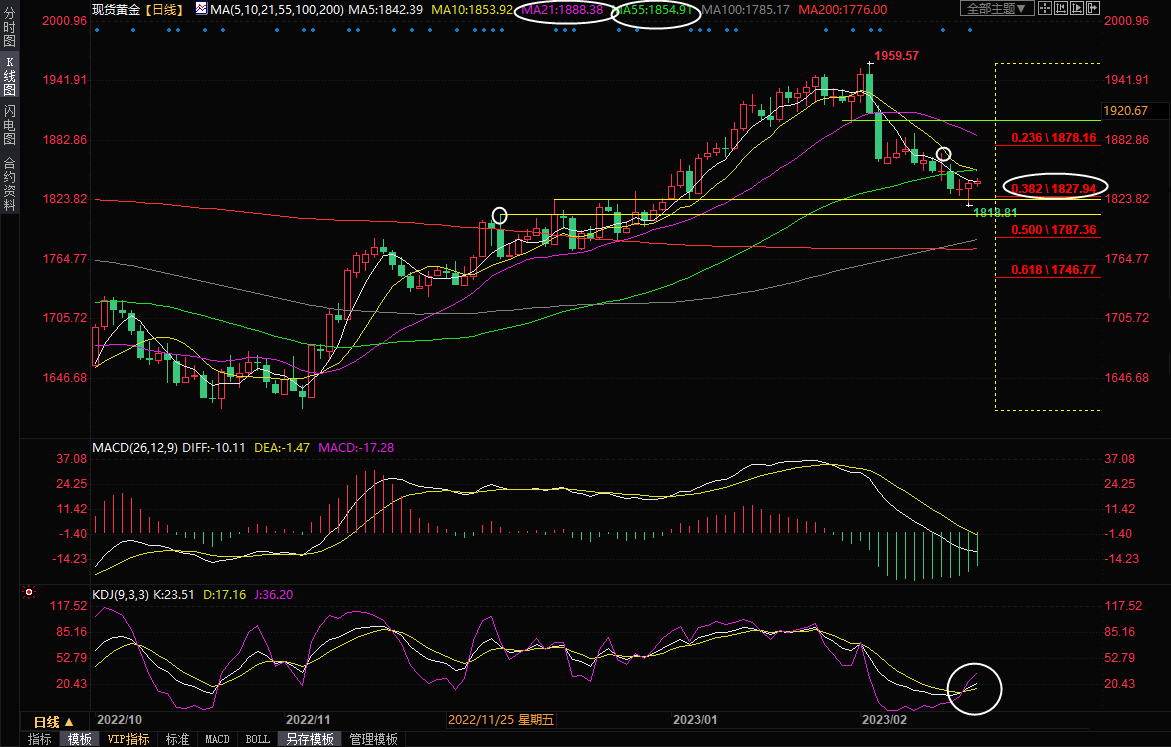 日线级别:震荡;MACD死叉,KDJ重新结成金叉,短线走势变数较大,鉴于上一交易日录得带长下影线的小阳线,暗示下方支撑较强,1615-1960涨势的38.2%回撤位1827.92附近关键支撑失而复得,短线金价存在一些反弹机会,初步阻力在55日均线1854.91附近,10日均线阻力也在该位置附近,若能收复该位置,则增加短线看涨信号。进一步阻力参考1860关口,2月14日高点阻力在1870.45附近。