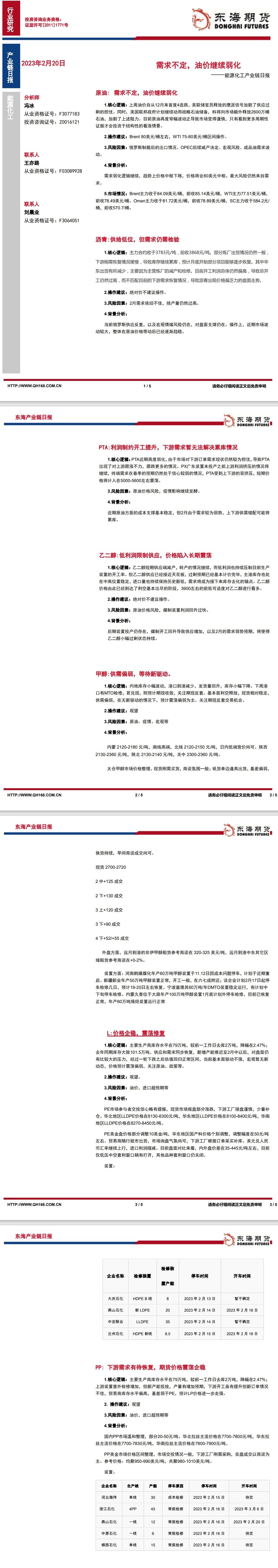 【东海期货2月20日产业链日报】能化篇:需求不定,油价继续弱化