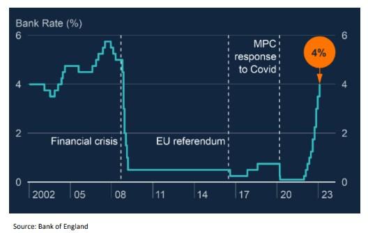 本月早些时候,利率从3.5%上调至4%,这是连续第五次高于正常水平的加息,此前是去年12月、9月和8月,加息幅度相同,11月宣布的加息幅度为0.75%点缀其中。