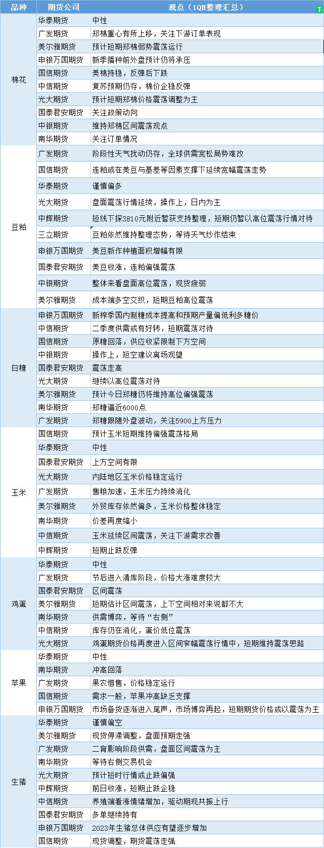 期货公司观点汇总一张图:2月22日农产品(棉花、豆粕、白糖、玉米、鸡蛋、生猪等)