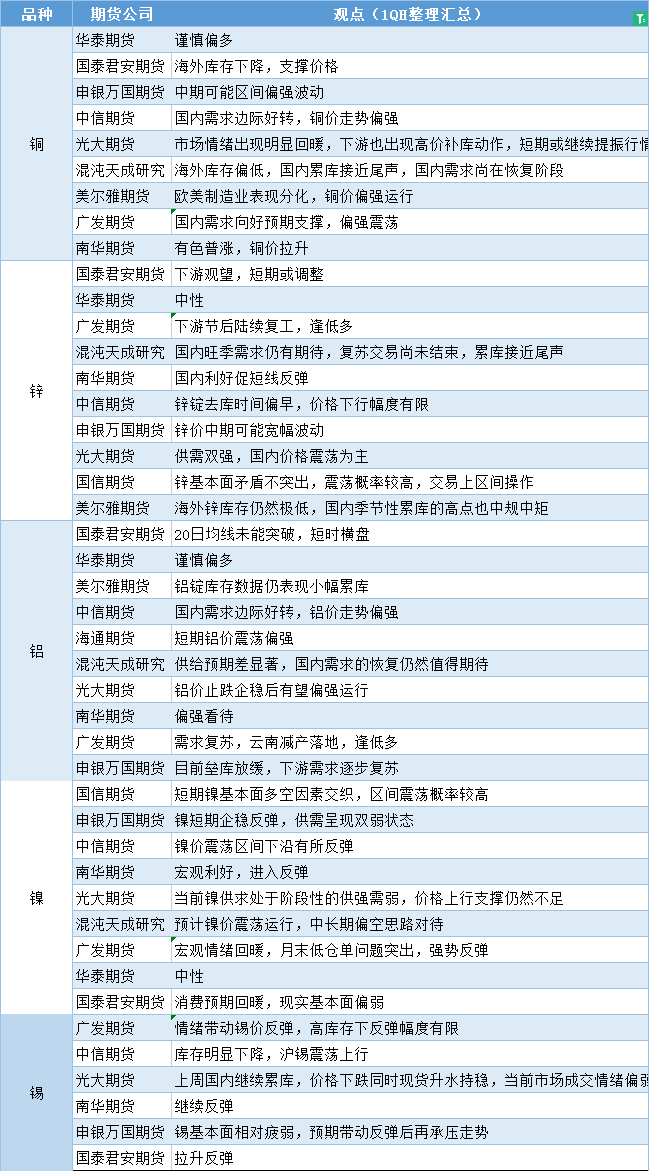 期货公司观点汇总一张图:2月22日有色系(铜、锌、铝、镍、锡等)